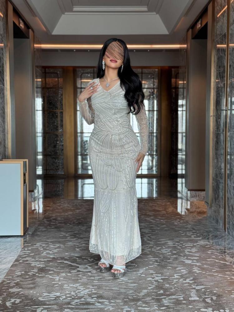 تألقي في مناسباتك الخاصة مع فستان سهرة لامع المصمم ليجمع بين الفخامة والرقي بلمسة عصرية ساحرة يتميز بلونه الأوف وايت الأنيق وأكمامه المطرزة الشفافة التي تضيف لمظهرك طابعًا راقيًا وجذابًا قماش التل الفاخر يمنحك إحساسًا بالنعومة والتميز