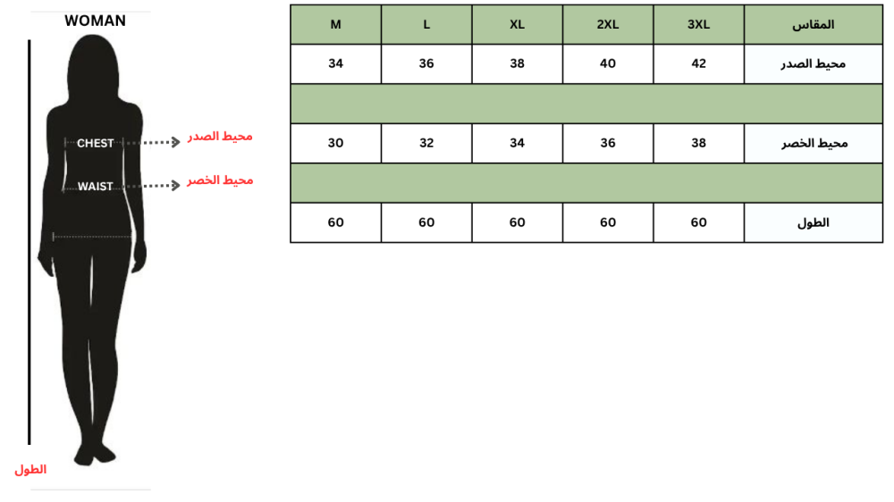 - المقاسات المتوفرة: M, L, XL, XXL, XXXL